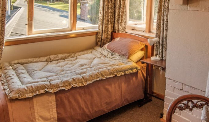 Our single room is perfect for the individual traveler, with an expansive view over the paddocks, towards the bush and Little Mount Peel in the distance.